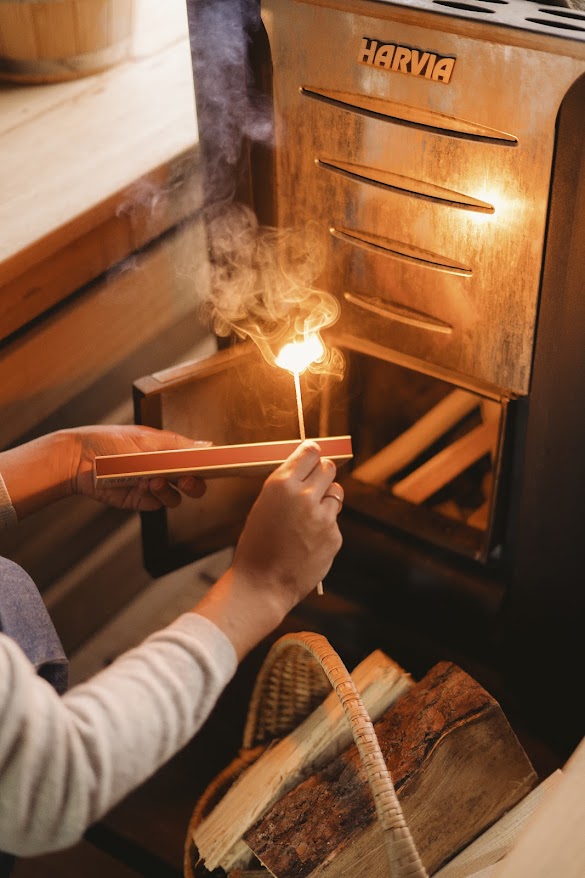Des petites lumières se trouvent aux escaliers d’accès et à l’intérieur. Nous recommandons de prévoir des lampes frontales pour les alentours du sauna lors des sessions nocturnes.